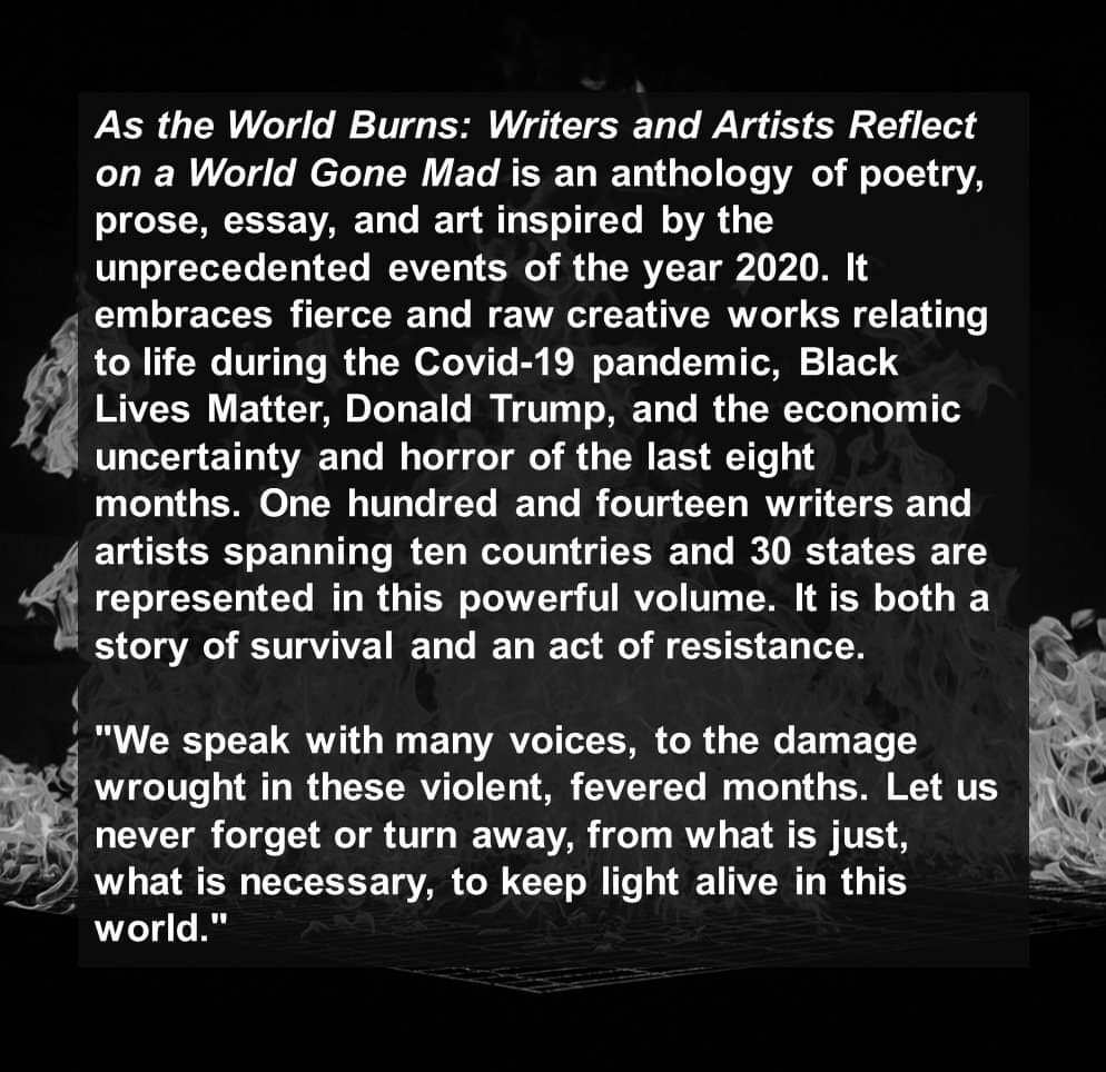 As The World Burns, an anthology responding to the events of the last year, which I am honored to be a part of, is now available on Amazon.